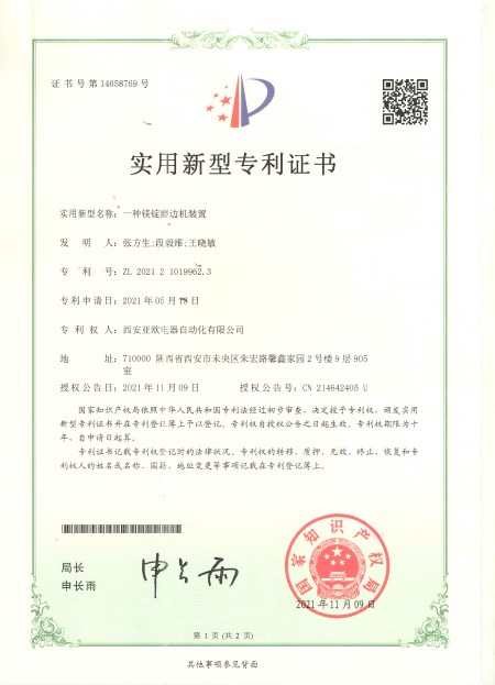 - 關(guān)于我們 - 資質(zhì)榮譽 - 一種鎂錠磨邊機裝置專利
