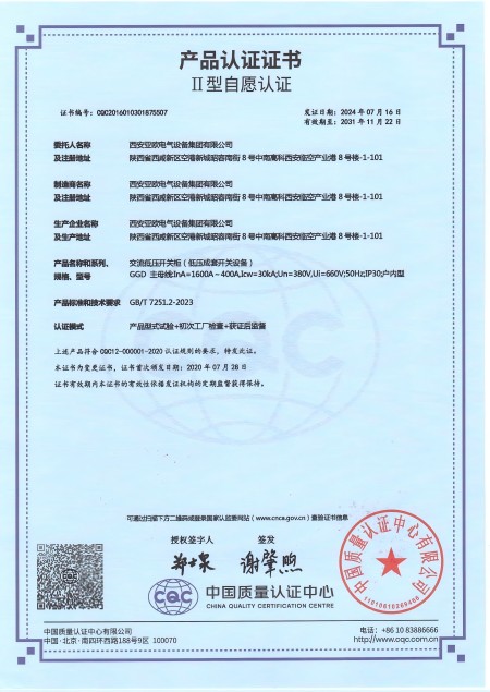 - 關于我們 - 資質(zhì)榮譽 - 交流低壓開關柜(GGD)資質(zhì)