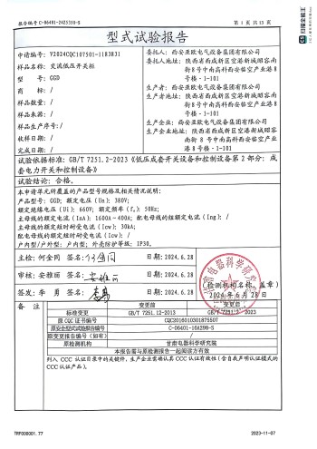 - 關(guān)于我們 - 資質(zhì)榮譽(yù) - 交流低壓開關(guān)柜(GGD)資質(zhì)